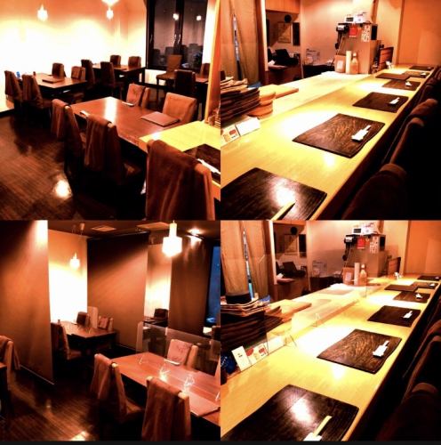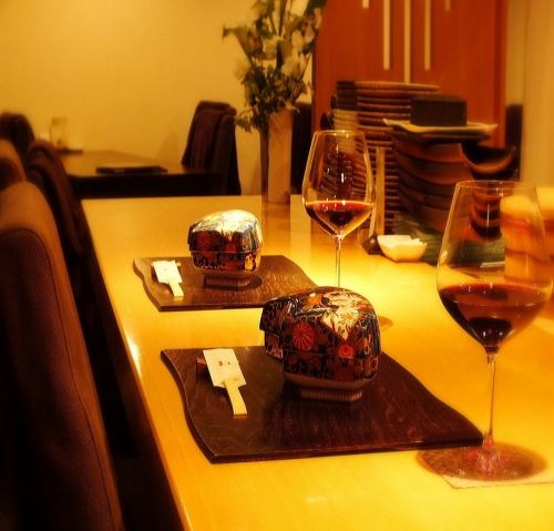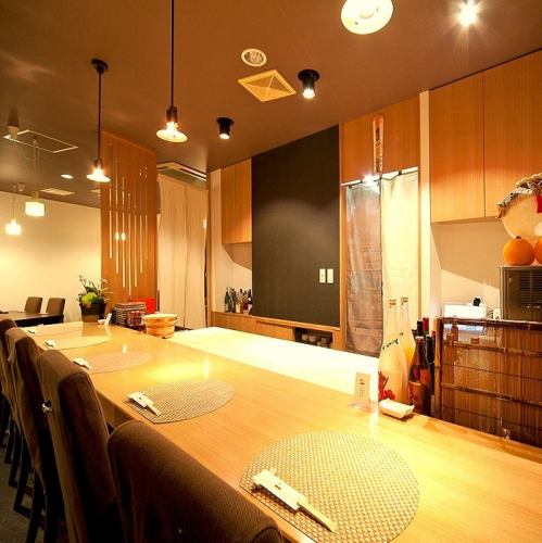 【非対面席なのでウイルス感染予防にも】料理長の包丁捌きを見ながら「旬」を楽しめるカウンター席は大人のデートにおすすめ。
